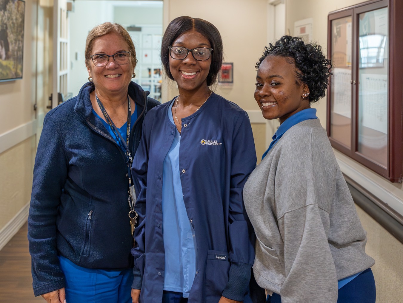 Pat DiGiacomo, La Salle assistant professor, School of Nursing and Health Sciences, with La Salle students Gabrielle Walker-Williamson and Shayla Carey.